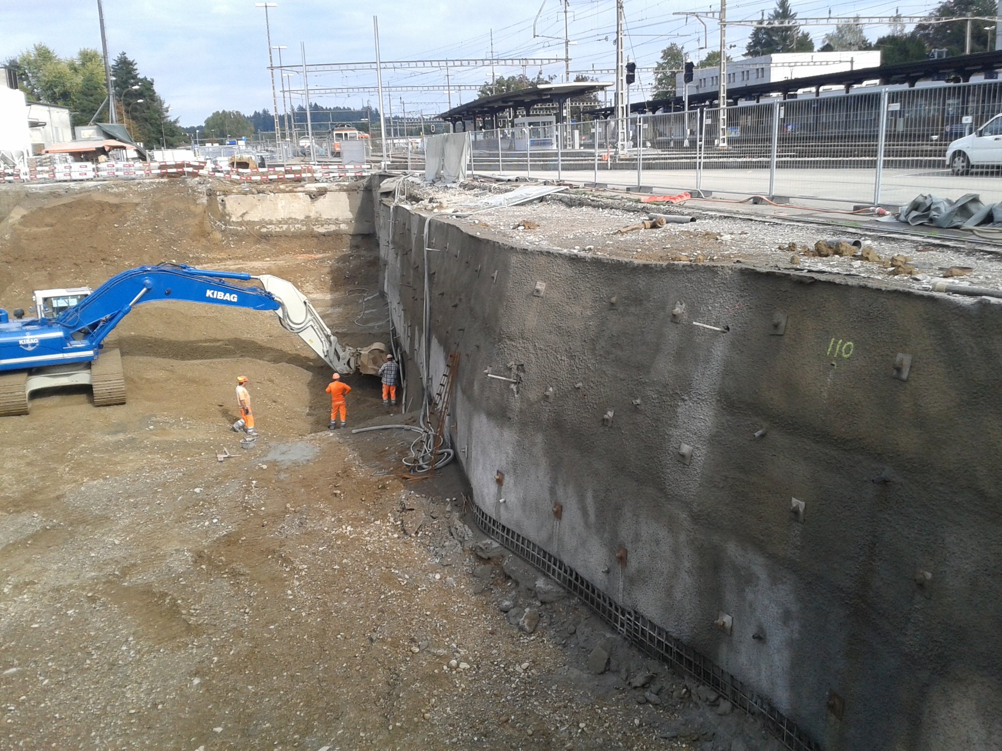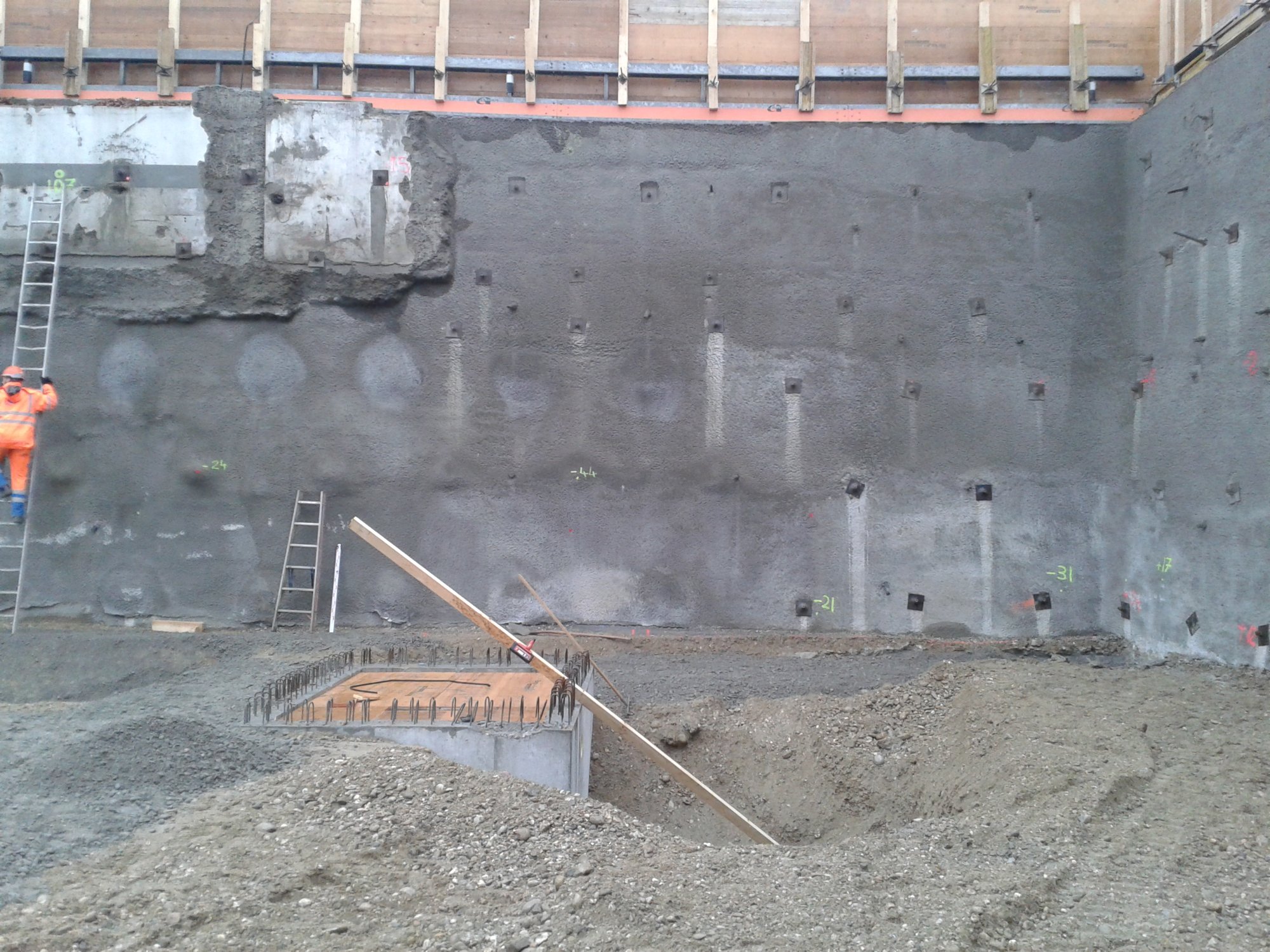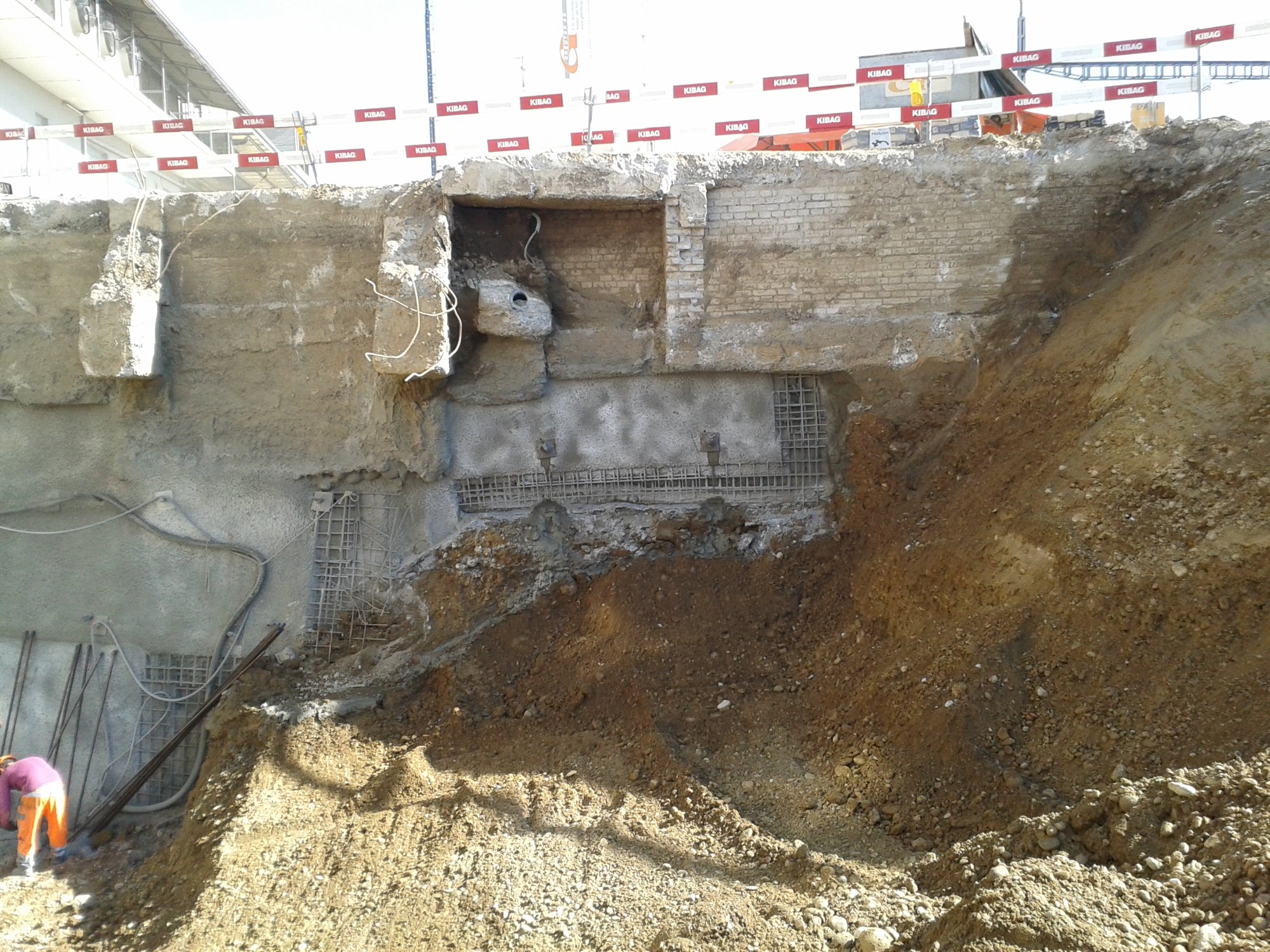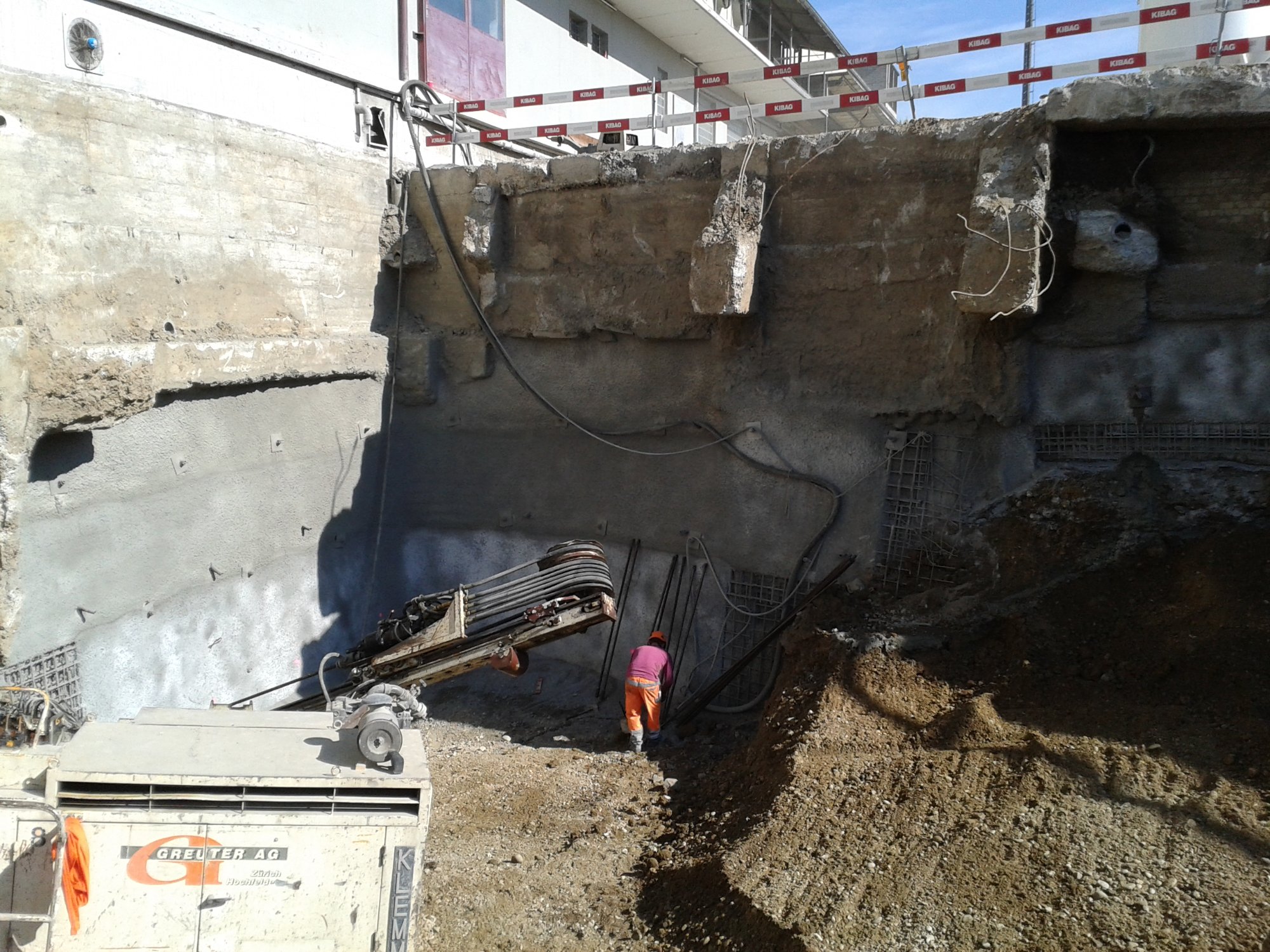Baugrubenumschliessung mittels rückverankerter Nagelwand.