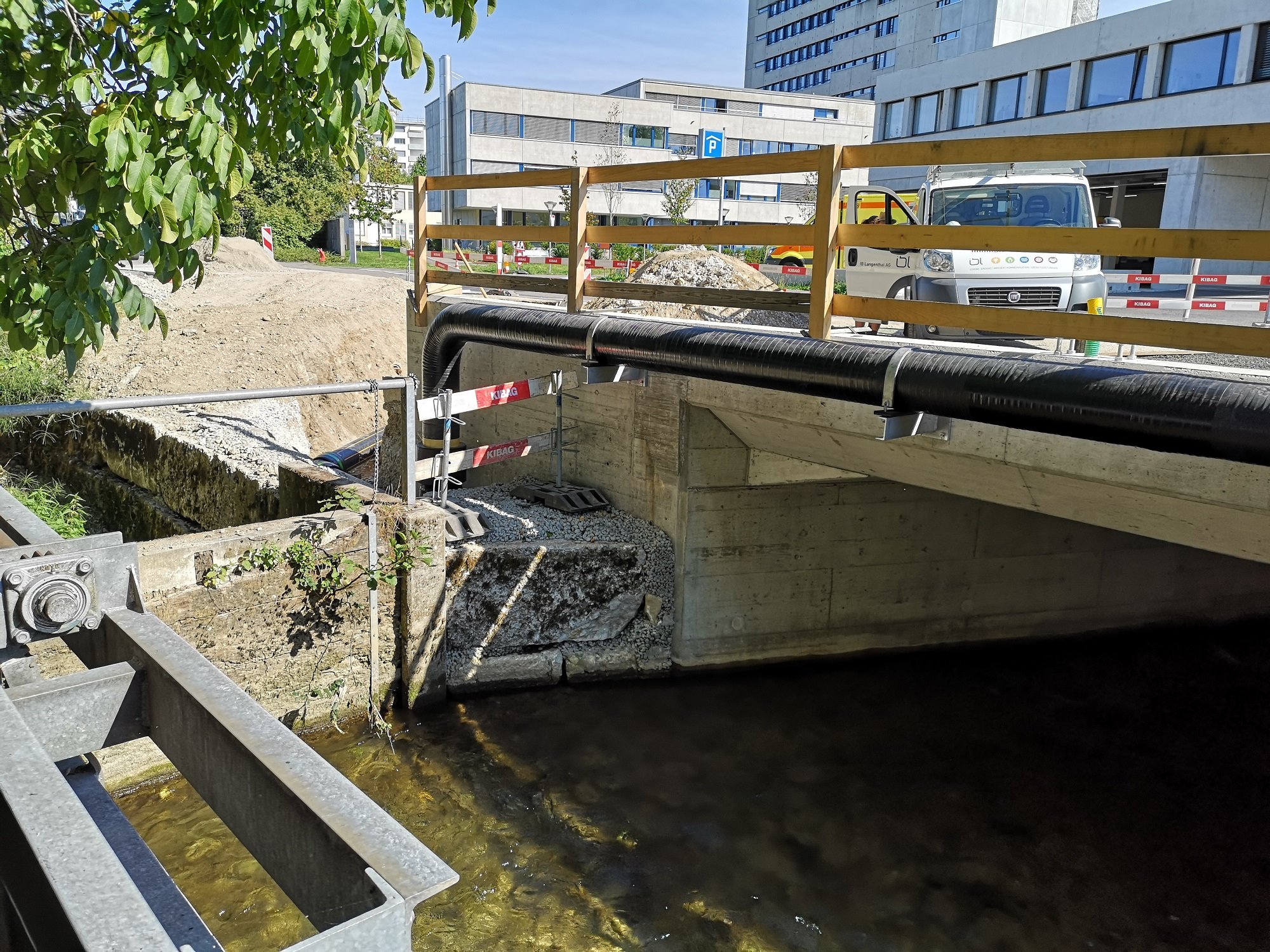 Seit März 2020 wird die gesamte Waldhofstrasse in Langenthal saniert, ebenso wird die Brücke über den Fluss die Langete neu gebaut. Die neue Brücke wird breiter und hat einen verstärkten Bezug zum Fussweg. Eine provisorische Ersatzbrücke ist nur einspurig befahrbar.