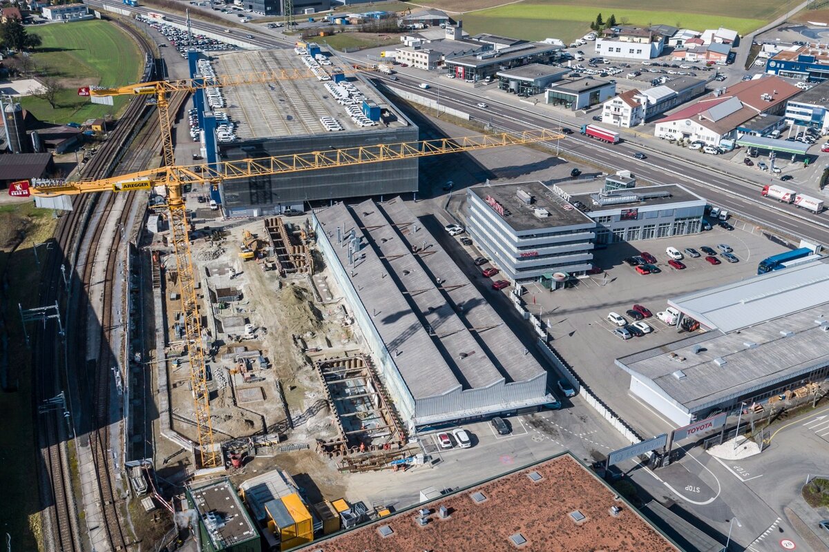 Nach 48 Jahren weicht bei der Emil Frey Betriebs AG in Safenwil die bestehende Neuwagenaufbereitung PDI einem Neubau. Auf einer Grundfläche von rund 6'300 m2 wird ein 5-geschossiger Massivbau errichtet.