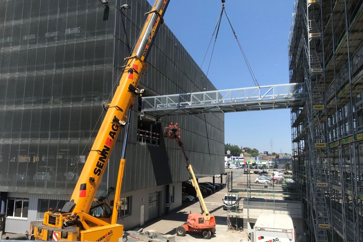 Grosse Deckenspannweiten, unterschiedlichste Nutzungen auf den Geschossdecken und ein schlecht tragfähiger Baugrund fordern unser Ingenieur-Knowhow bei diesem Neubauprojekt.